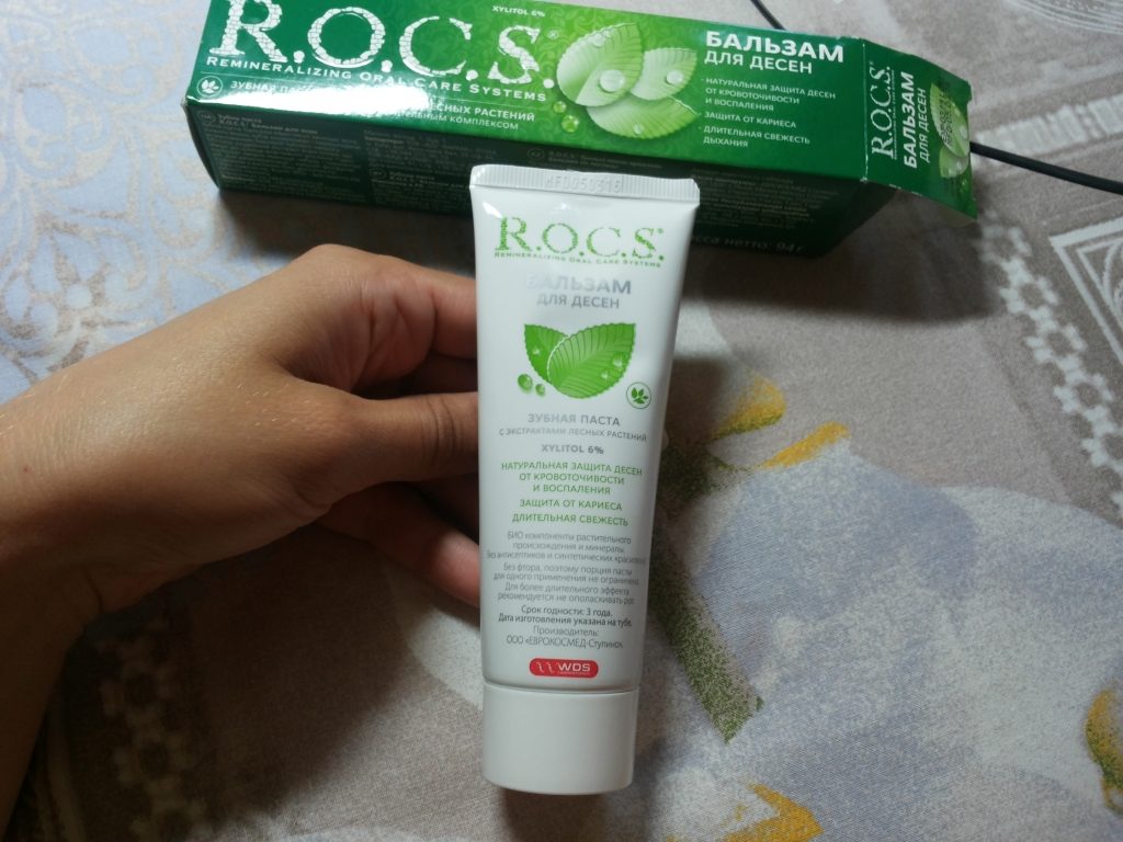 Zahnpasta R.O.C.S. "Gum Balm" schützt perfekt vor Entzündungen und Blutungen, verhindert die Ausbreitung von Bakterien und sättigt den Zahnschmelz mit Nährstoffen. Das in der Paste enthaltene natürliche Xylit schützt vor Karies, beugt der Entstehung von Plaque vor und normalisiert das bakterielle Gleichgewicht der Mundhöhle.