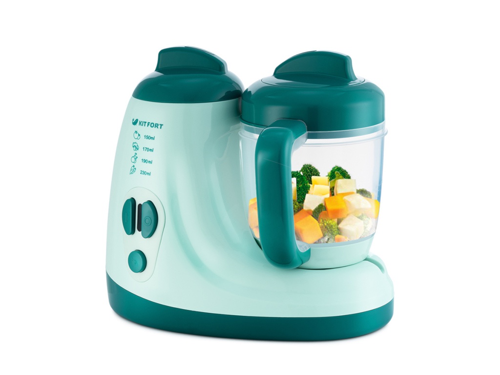 Kinder bereiten Essen mit einem speziellen Mixer zu, der mit Hilfe verschiedener Aufsätze und Geräte alle Zutaten in eine homogene Masse ohne Klumpen verwandelt. Es ist besser, Ihr Baby mit solchen Produkten zu füttern als mit Fertigmischungen, da sich Naturprodukte positiv auf Gesundheit und Entwicklung auswirken.