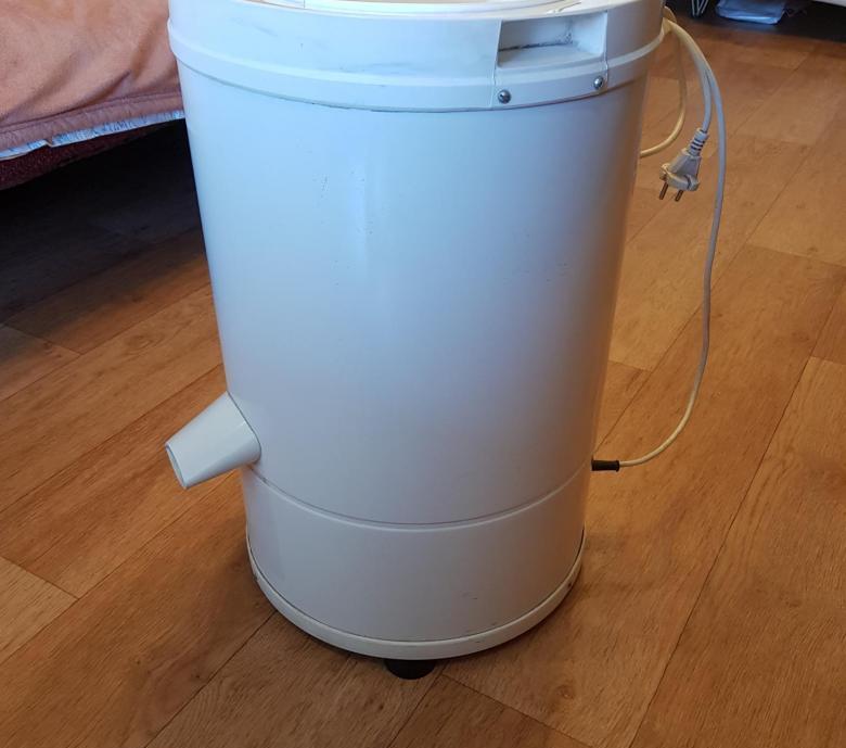 Die freistehende Zentrifuge fasst 6,5 kg Nasswäsche. Die maximale Schleuderdrehzahl beträgt 1300 U/min. Das Gerät kann ohne Anschluss an die Kanalisation verwendet werden.