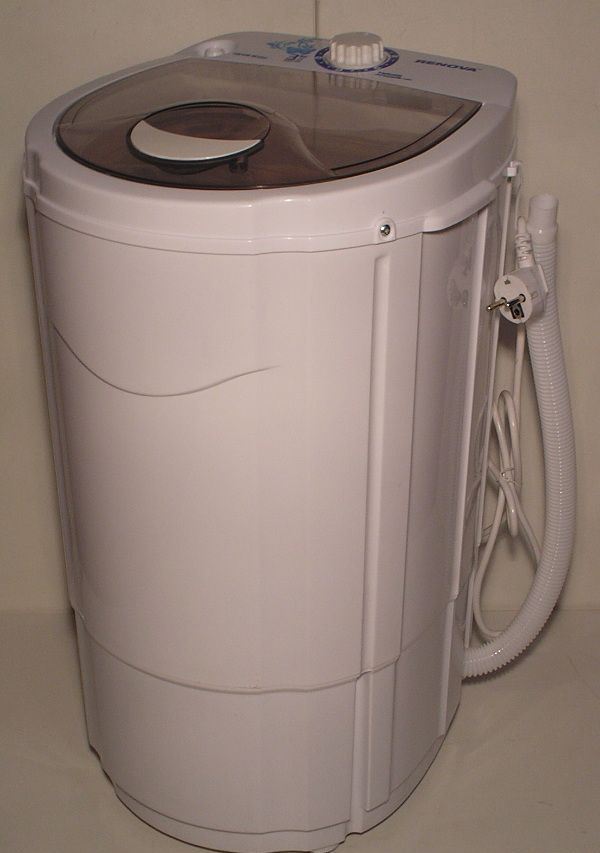 Neben der Schleuderfunktion kann das Gerät auch zum Spülen nach dem Waschen verwendet werden. Kleine Größe und ein spezieller Tragegriff ermöglichen es Ihnen, das Gerät an den richtigen Ort zu bringen. Außerdem spart das Gerät Energie, was bei häufiger Nutzung wichtig ist.