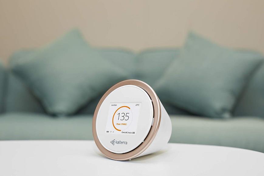 Awair Second Edition ist ein leistungsstarkes Instrument, das Staub, Chemikalien, Kohlendioxid, relative Luftfeuchtigkeit und Temperatur misst. Es ist auch bemerkenswert, dass das Gehäuse des Geräts umweltfreundliche Materialien enthält.