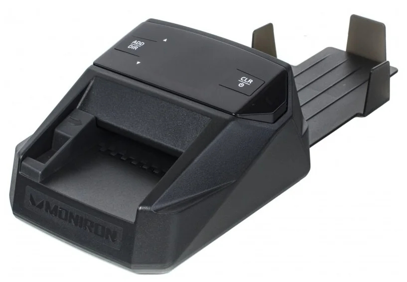 Banknotenbündel werden in die Aufnahmetasche gelegt. Seine Abmessungen sind je nach Modifikation für eine unterschiedliche Anzahl von Banknoten ausgelegt. Das Gerät überprüft schnell einen großen Geldbetrag. Die Nennwerte der vorbeilaufenden Banknoten erscheinen auf dem Bildschirm.
