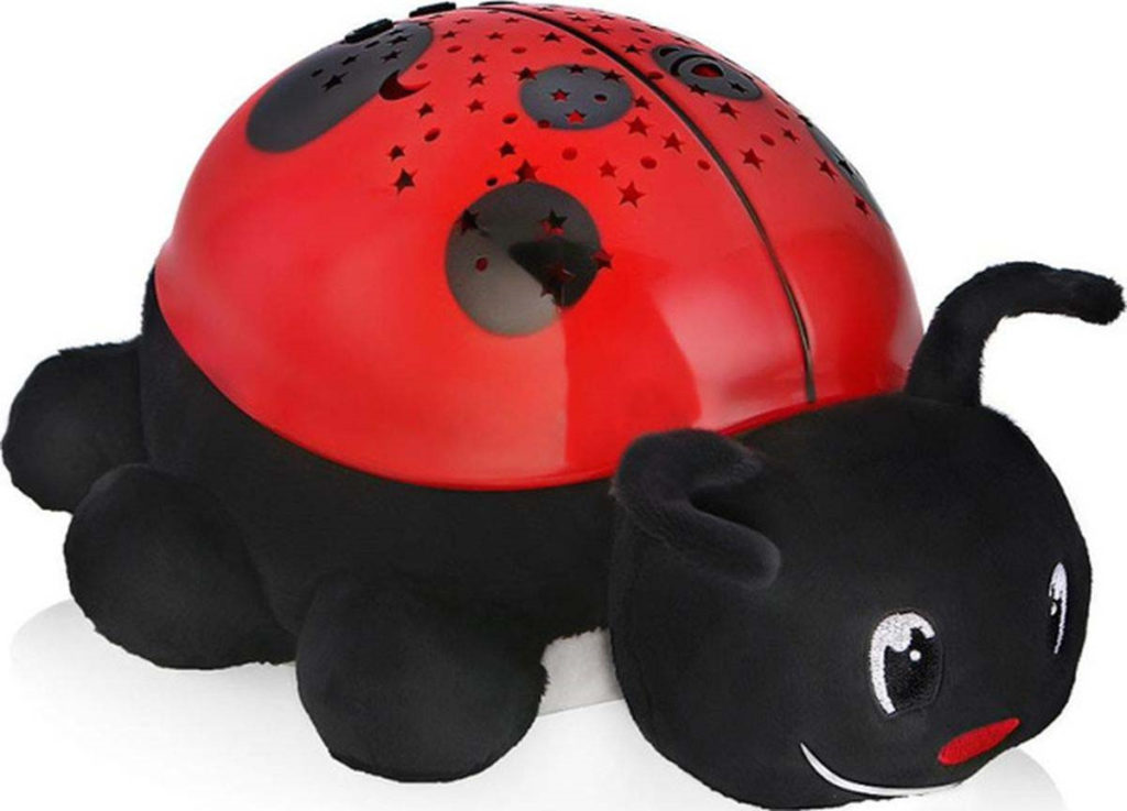 Ein süßes Detail der Einrichtung eines Kinderzimmers für ein Mädchen. Hat auch eine eingebaute Säule. Strahlt weiches Licht aus. Durch die kleinen Löcher an den Flügeln kann dieser Marienkäfer die Sterne und den Mond in den Raum projizieren.