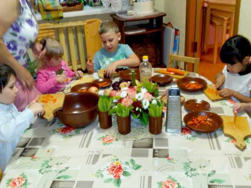 Sich im Kreis treffen, frühstücken, frei spielen – so beginnt der Tag im Garten „Weg des Getreides“. Kleinkinder und ältere Kinder spielen, und Erwachsene führen die Geschäfte der Gruppe, geben den Kindern ein Beispiel und helfen ihnen, ins Erwachsenenalter zu verschmelzen. Nach der Reinigung - Unterricht: Modellieren, Teigzubereitung, Rhythmus, Malen, dann ein Spaziergang. Für eine Gruppe mit einem Teilzeitbesuch wird das Mittagessen für einen Spaziergang in Thermoskannen eingenommen, so dass eine logische Schlussfolgerung entsteht: Spaziergang, Mittagessen, Schlafen. Jeden Montag gehen die Kinder nach dem Frühstück in den Wald und gehen bis zum Mittagessen spazieren. Die natürliche Umgebung wirkt sich positiv auf die Psyche des Kindes aus und verleiht dem heranwachsenden Organismus Vitalität. Sie können ein Kind anmelden, wenn es 3,5 - 6 Jahre alt ist. Zahlungsrabatte werden für 2, 3 Kinder gewährt. Wenn es nicht möglich ist, das Baby um 17.00 Uhr abzuholen, können Sie die Gärtner warnen, und das Kind kann bis 18.00 Uhr abgeholt werden.