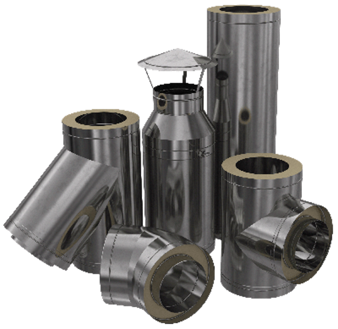 Die erwärmten Modelle für die Arbeit mit Heizaggregaten auf verschiedenen Brennstoffarten. Wird sowohl außerhalb als auch innerhalb der Räumlichkeiten verwendet. Konstruktionsmerkmale lassen keine Kondensatbildung in großen Mengen zu. Hohe Leistungseigenschaften werden durch die Verwendung eines Außenrohrs aus austenitischem Stahl AISI 304 und eines Innenrohrs aus säurebeständigem AISI 316 mit einer Dicke von 0,5 bis 1,0 mm erreicht. Als Isolierung wird eine nicht brennbare Rockwool Wired Mat aus Basaltwolle verwendet, die bis zu 1000⁰С standhalten kann.