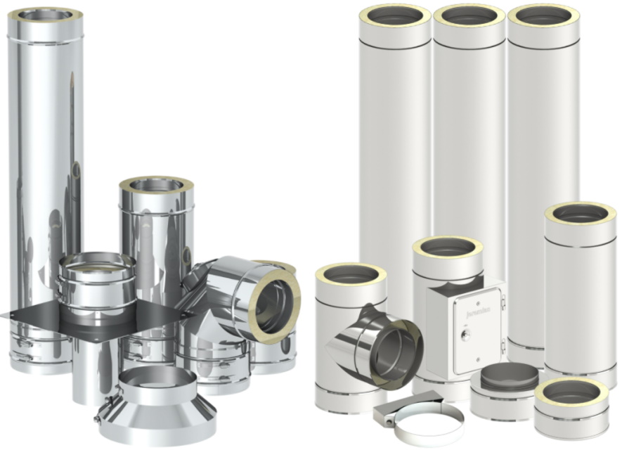 Isolierte und gasdichte Edelstahlsysteme für Gas-, Flüssig- oder Festbrennstoffheizungen, Brennwertgeräte, Lüftungsanlagen, Öfen, Notstromaggregate.