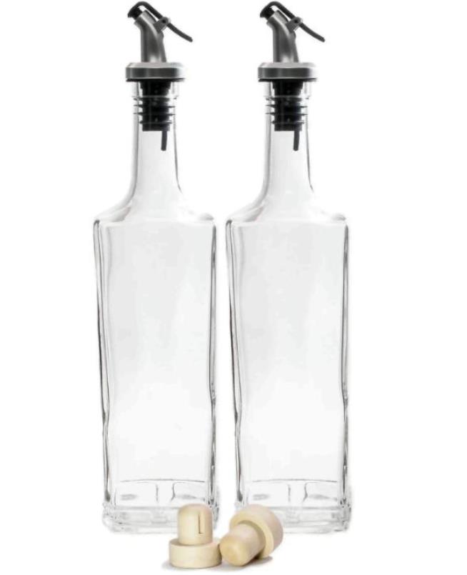 Das Set besteht aus zwei durchsichtigen Glasflaschen mit quadratischem Querschnitt mit einem Volumen von je 500 ml, einer Flaschenbreite von 7,1 cm, die neben den Korken jeweils mit einem Spender geliefert werden. Kann für dünne und mitteldicke Saucen verwendet werden. Die Wände der Flaschen sind dick und langlebig.