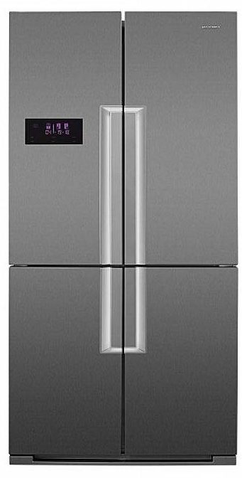 Der Kühlschrank besteht aus drei Kammern, von denen jede Glasregale hat. Die Kammern sind durch 4 Türen verschlossen, von denen eine ein Display hat. Es hat Steuertasten. Das Vorhandensein von zwei Kompressoren ermöglicht es Ihnen, in jeder Kammer eine individuelle Temperatur einzustellen. Das ist eigentlich sehr gut, denn Obst und Gemüse bleiben dadurch wahrscheinlich länger frisch. Alle Türen schließen dicht und bleiben dicht.