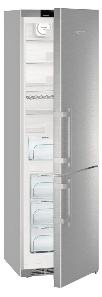 Zweikammer-Kühlschrank mit großem Fassungsvermögen. Es gibt eine Top-Luftzufuhr, dieses Feature gilt als innovativ. Es sorgt dafür, dass die vom Benutzer eingestellte Temperatur schneller erreicht wird.
