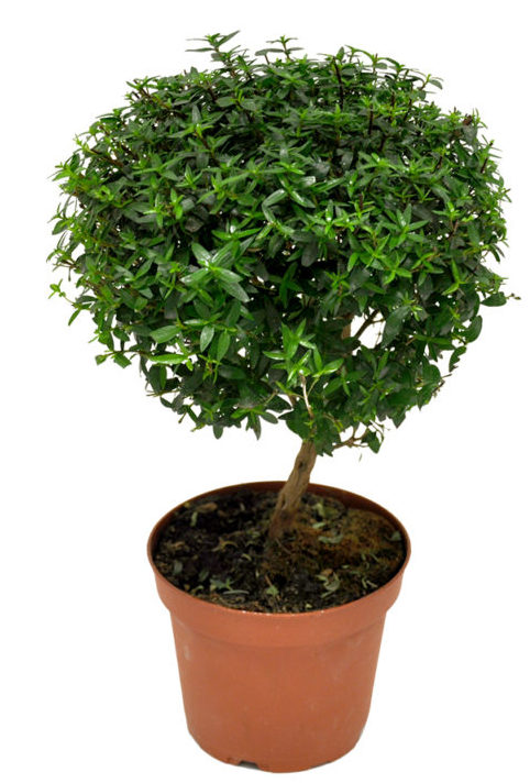 Eine immergrüne Pflanzenart mit verzweigten Stämmen und glänzenden ovalen Blättern blüht selten zu Hause und sättigt den Raum nicht mit Aroma.