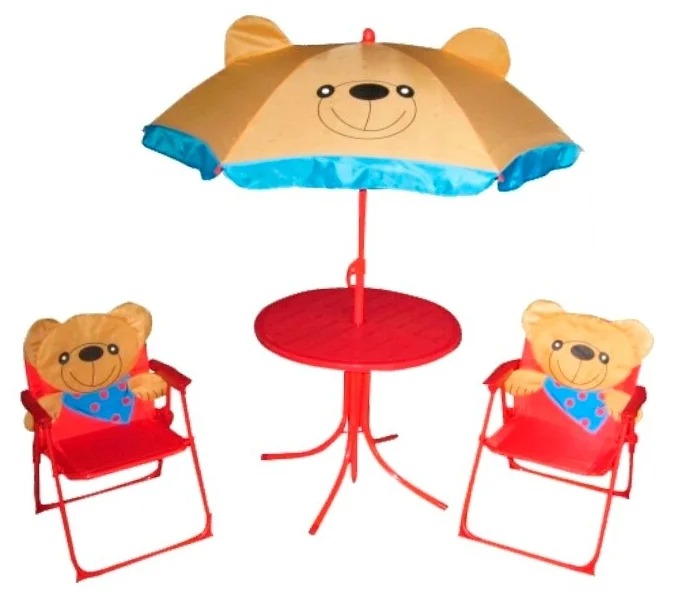 Es handelt sich hauptsächlich um Spielsets, die für die Freizeit mit einem Baby auf dem Land geeignet sind. Es sieht aus wie ein Sommertisch mit ein paar süßen Stühlen.