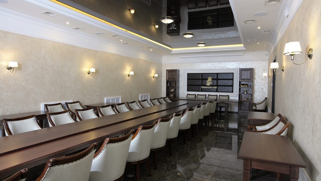 - Halle benannt nach F.I.Shalyapin - ein Raum im streng klassischen Stil mit einer Fläche von 85 m² und einer Kapazität von bis zu 130 Personen, ausgestattet mit einem Videokonferenzsystem, einem Briefing-System und einem Simultanübersetzungssystem. Die Kosten für die Anmietung von 3 Stunden betragen 10.000 Rubel.