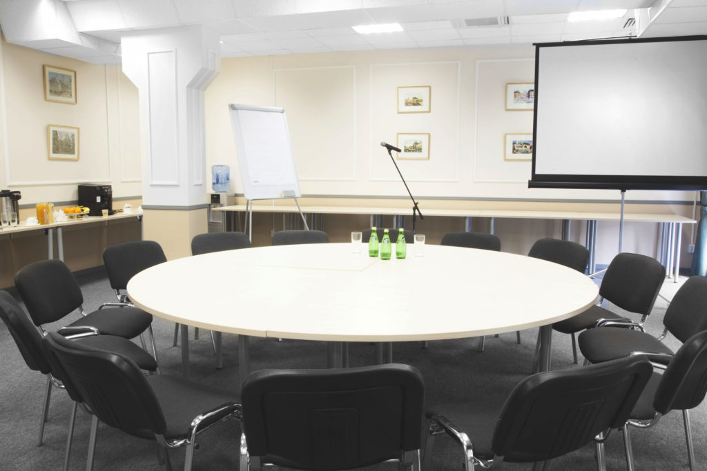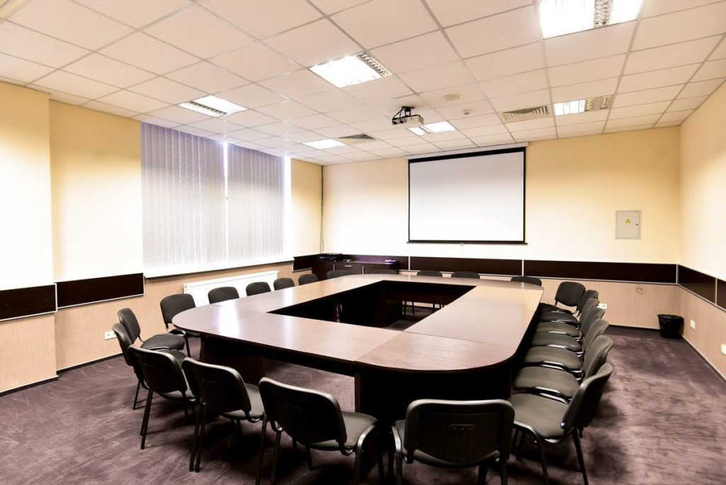 Die Institution verfügt über einen in Beige- und Rottönen dekorierten Konferenzraum mit einer Fläche von 80 Quadratmetern, der für Konferenzen, Symposien oder Verhandlungen geeignet ist. m für bis zu 60 Personen. Folgende Leistungen sind im Mietpreis der Räumlichkeiten enthalten: