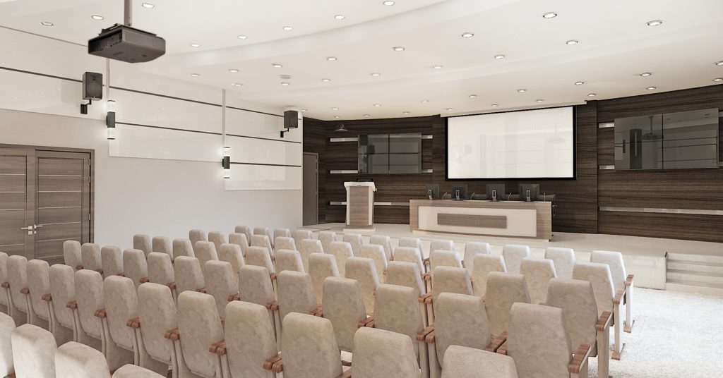 Der Konferenzsaal ist ein spezialisierter Raum, der für verschiedene geschäftliche Veranstaltungen bestimmt ist. Unerlässliche Eigenschaften: