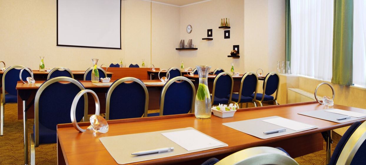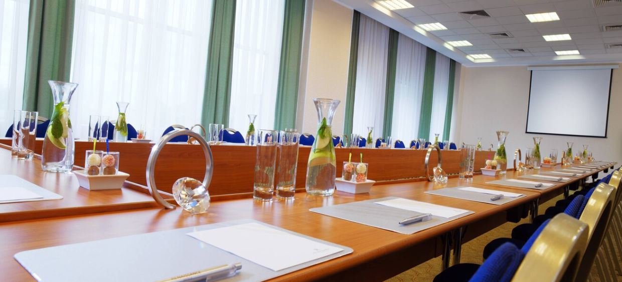 Der Hotelservice sorgt für die notwendige Anordnung der Möbel sowie für ein Menü mit Kaffeepausen. Die kleinen Säle des Hotels sind technisch mit den notwendigen Geräten ausgestattet. Spezialisten stellen den Ton ein, Monitore. Probleme werden behoben.