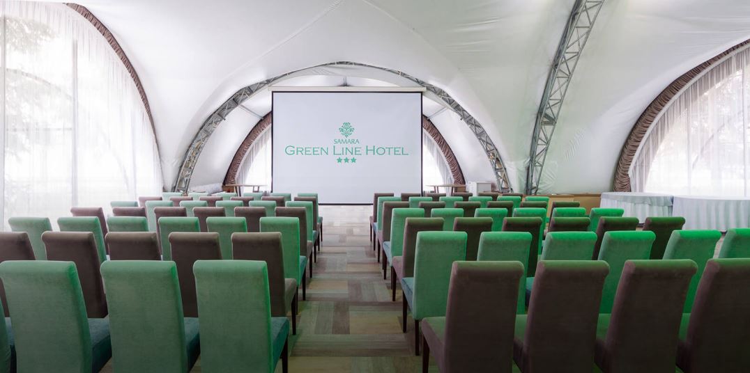 Diese Säle gehören auch zum Lotte Samara Hotel. Größe 119 m2. Kapazität bis zu 150 Personen.