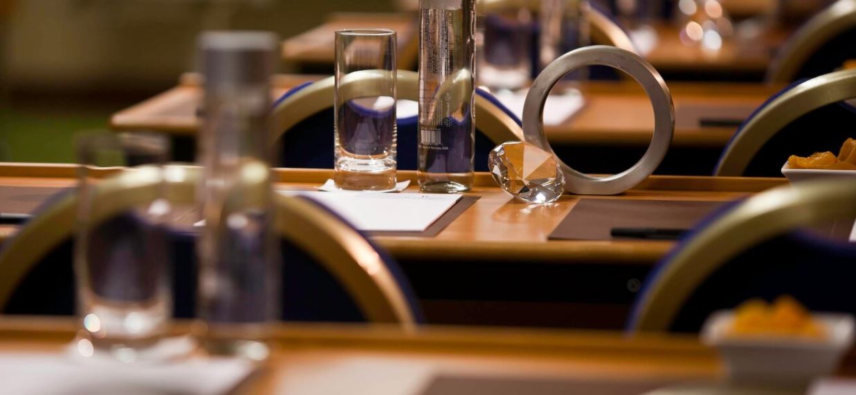Der Raum ist mit den notwendigen Gegenständen ausgestattet: ein langer Tisch für die Teilnehmer des Treffens und Sessel, ein Buffettisch, ein Podium für Redner und Sitzgelegenheiten. Einige Säle sind mit einer Bühne ausgestattet.