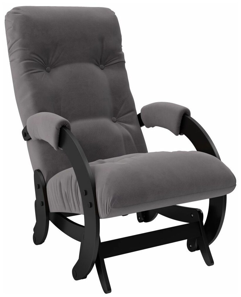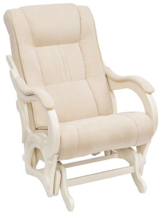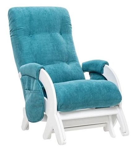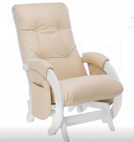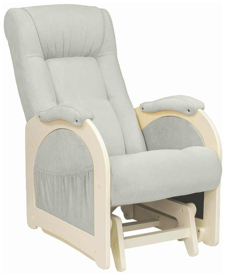 Ein weiterer Stuhl zum Ausruhen und Füttern des Babys. Der Rahmen des Modells besteht aus Massivholz, was das Produkt umweltfreundlich, langlebig, aber gleichzeitig schwer macht. Das Gewicht des Produkts verleiht dem Stuhl jedoch zusätzliche Stabilität und beeinträchtigt die Leichtgängigkeit des Schwungs absolut nicht. Die Armlehnen sind mit weichen Polstern ausgestattet und an den Seitenflächen befinden sich Taschen. All dies macht den Stuhl sehr bequem. Die Rückseite des Produkts hat eine ausreichende Höhe und eine ergonomische Kopfstütze, was den Gesamtkomfort nochmals erhöht.