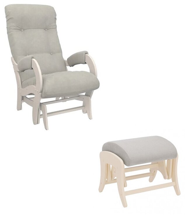 Ein weiterer Stuhl der Marke Milli, dieses Set beinhaltet sowohl den Stuhl selbst als auch die Hocker-Fußstütze. Gleichzeitig sind beide Möbelstücke mit einem Pendelmechanismus ausgestattet. Das heißt, durch Platzieren der Beine auf dem Ständer kann der Benutzer gleichzeitig schwanken. Dies ist eine Garantie für einen komfortablen Aufenthalt.