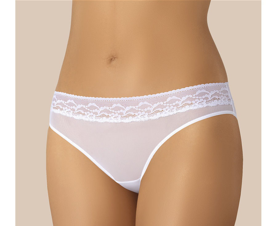 Slips aus dünnem, durchsichtigem Mesh mit Spitzeneinsatz in der Taille. Sie sind am Körper praktisch nicht zu spüren, rutschen nicht und schneiden nicht in das Gesäß ein - sie passen unter einen eng anliegenden Rock oder ein Kleid. Hervorragende Nahtqualität, ohne überstehende Fäden. Der einzige Nachteil ist, dass sie in 2 Farben (schwarz und weiß) hergestellt werden.
