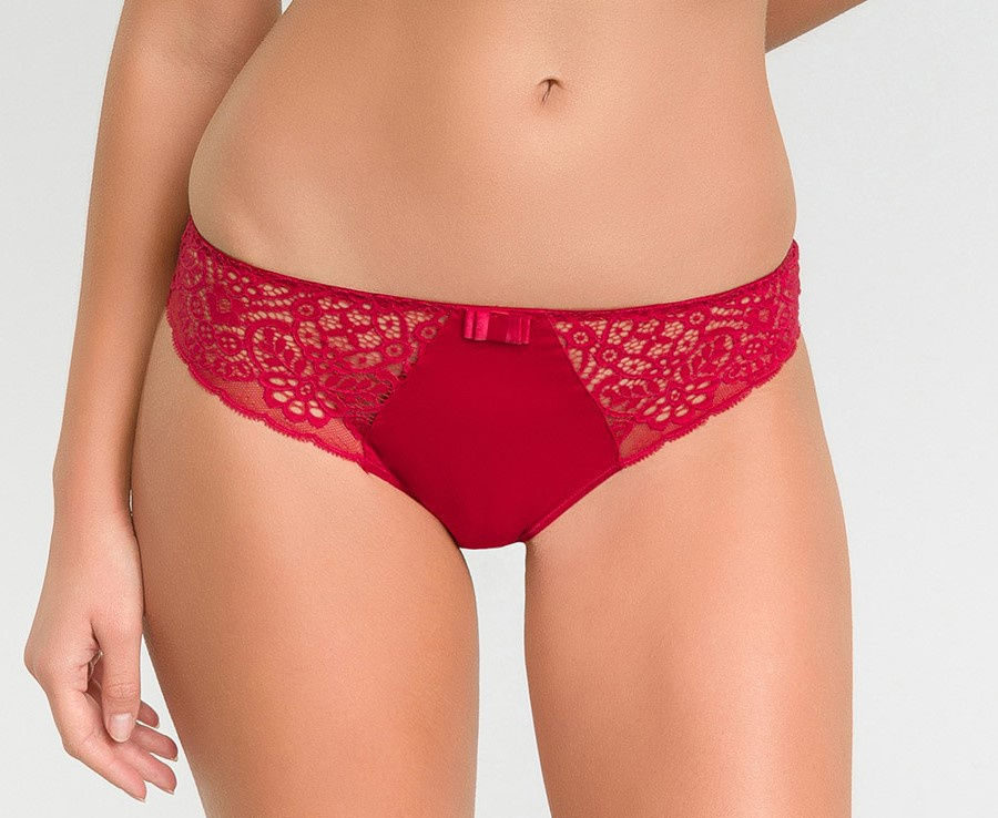 Aus der klassischen Kollektion - das ist eine Kombination aus elastischem Strick und Spitze. Das brasilianische Modell gilt als universell - es betont das Gesäß, verengt optisch die Taille und betont die Hüftlinie.