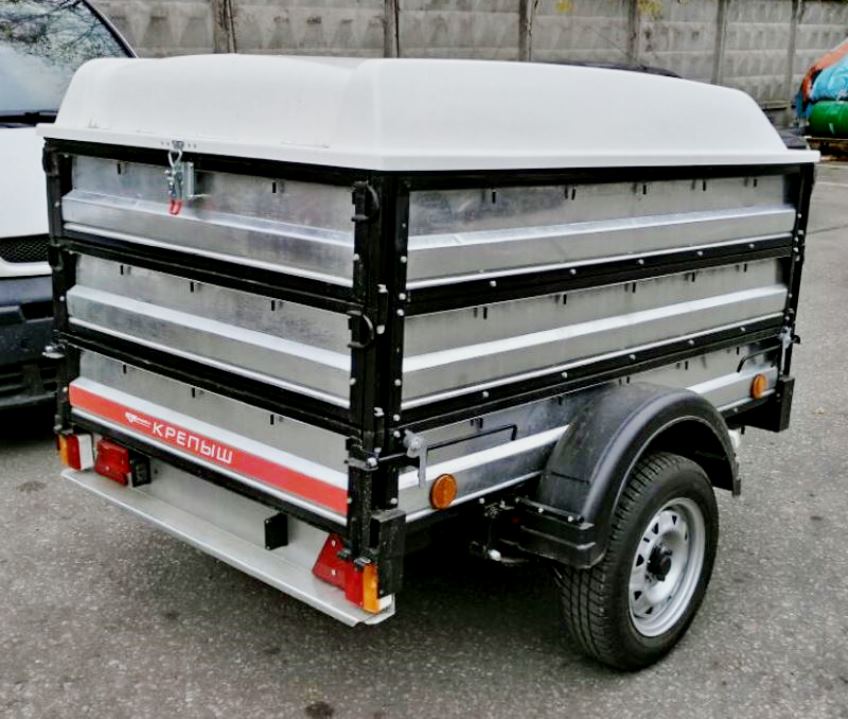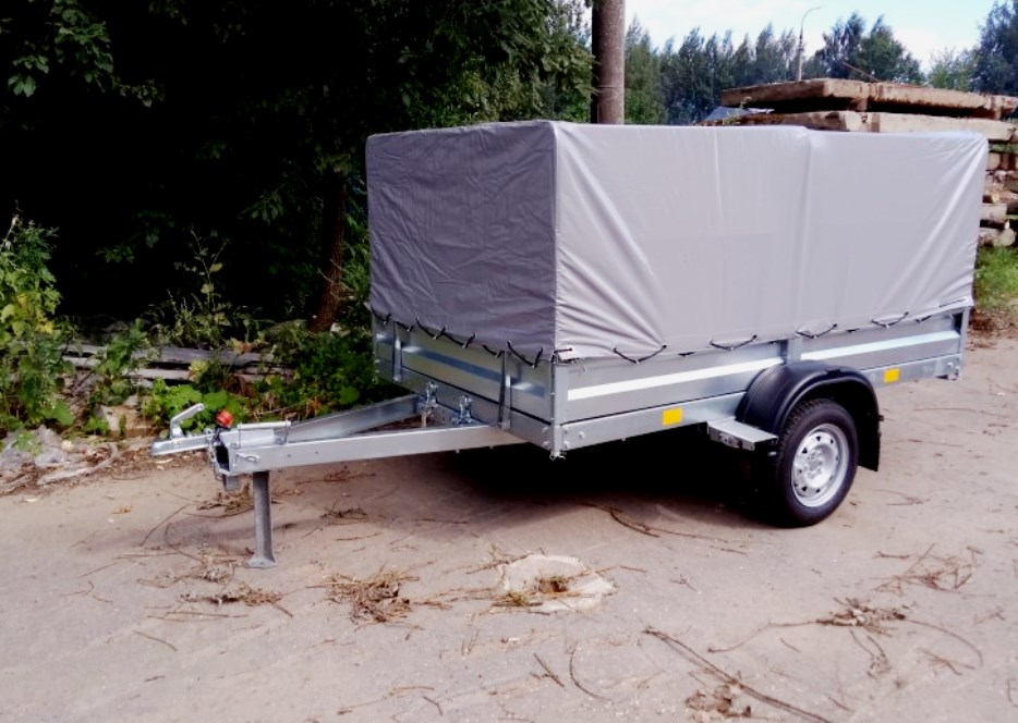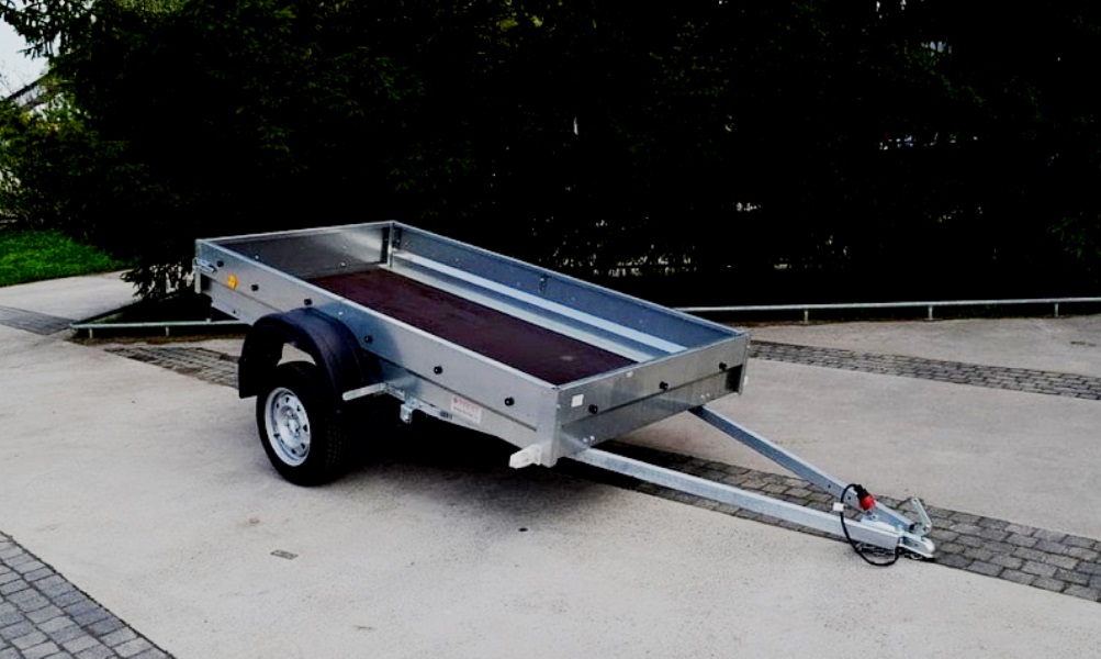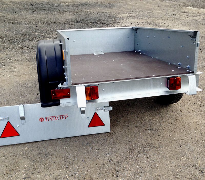 Der Vertreter der kommerziellen Serie ist mit einer Onboard-Plattform ausgestattet. Bezieht sich auf die Art der zweiachsigen. Bei der Herstellung aller Komponenten wurde hochwertiges verzinktes Blech verwendet. Eine Besonderheit ist die Möglichkeit, die Seiten aufgrund spezieller Schlaufen zu entfernen und zu installieren. Der Innenraum besteht aus 9 mm wasserfestem Sperrholz. Die Aufhängung ist mit vier Federn mit Teleskopstoßdämpfern ausgestattet.Die Deichsel hat einen variablen Abschnitt, der es ermöglicht, den Kupplungskopf in der Höhe zu verstellen. Die Kupplung hält einer Belastung von 50 kg stand. Bei der Herstellung der Struktur wurde verzinkter Stahl verwendet.