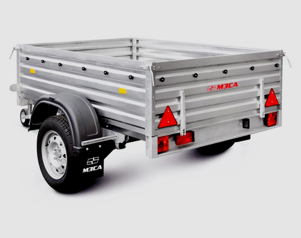 Eine Besonderheit dieses Modells ist das Vorhandensein von Seiten, die durch eine spezielle Mischung vor Rost geschützt sind, und Stützräder, die einer maximalen Belastung von 550 kg standhalten können. Die Bretter sind in zwei Reihen montiert. Ausgestattet mit sechzig Zentimeter schwarzer Persenning und federdämpfender Aufhängung.Die verlängerte Deichsel ermöglicht den Transport von Gegenständen bis zu einer Länge von 5,5 m. Die Seitenhöhe wird durch Verlängerungen erhöht. Es kann an SUVs angebracht werden, indem zuerst die Nabe verstärkt und Räder mit einem größeren Durchmesser (15 oder 16 Zoll) installiert werden.
