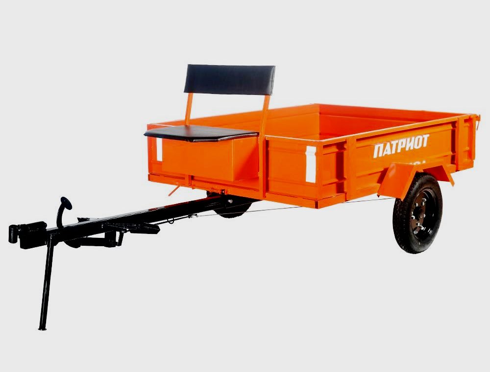 Lässt sich an jedem Motoblock befestigen. Konzipiert für den Transport aller Gegenstände, sowohl für Bau- als auch für landwirtschaftliche Zwecke. Das Vorhandensein eines bequemen Sitzes ermöglicht es dem Träger, den Transportprozess zu kontrollieren und gegebenenfalls die Ladung zu stützen. Das Hauptmerkmal ist das Vorhandensein einer klappbaren Heckklappe und einer Kippfunktion. Trotz seines geringen Gewichts von 75 kg ist er in der Lage, Produkte mit einem Gesamtgewicht von bis zu 280 kg zu transportieren. Der Körper hat Luftreifen, einen zusammenklappbaren Rahmen und Bandbremsen.