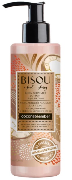 Es hat eine sehr zarte und leichte Struktur, ist gleichmäßig verteilt und zieht schnell ein. Hinterlässt kein klebriges oder fettiges Gefühl, hinterlässt keine Flecken auf der Kleidung. Verpackt in einer transparenten Flasche mit Spender, der ein versehentliches Drücken und Herausdrücken des Produkts verhindert, da er sich durch Drehen des Spenders nach rechts oder links öffnet und schließt. Kokosnussöl und Vitamin E, die in der Zusammensetzung enthalten sind, machen die Epidermis weich, intensiv nähren und befeuchten sie. Sonnenblumenöl schützt vor ultravioletter Strahlung und Bernsteinextrakt ist ein Antioxidans. Die Flüssigkeit hat einen angenehmen rosa Farbton, wenn sie auf den Körper aufgetragen wird, verleiht sie Glanz und Schimmer, die Haut strahlt förmlich, besonders in der Sonne.