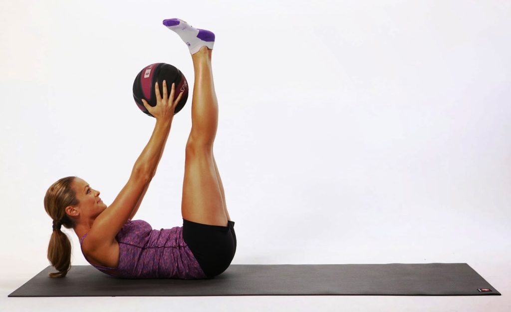 Wenn Sie eine Sportanlage besuchen, wählt der Trainer die für Sie geeignete Option aus, sagt Ihnen, welche Übungen Sie mit dem Medizinball machen sollen, und kontrolliert deren Durchführung. Aber wenn nicht viel Freizeit bleibt und Sie sich zu Hause mit der Erholung beschäftigen müssen, dann gibt es ein paar einfache Übungen, die auch eine unvorbereitete Person meistern kann. Sie werden helfen, Geschwindigkeit, Kraft, Ausdauer und Beweglichkeit zu entwickeln. Sie können mit rhythmischer Musik durchgeführt werden. Das Standardtraining beinhaltet folgende Übungen: