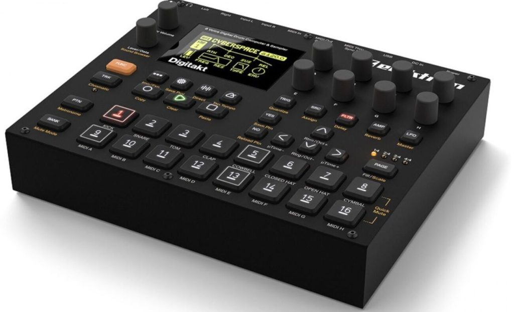 Das Gerät ist klein und kann für Aufnahmestudios oder bei Live-Auftritten verwendet werden. Es ist eine 8-Spur-Maschine mit einem MIDI-Sequenzer. Mit Hilfe eines kleinen Monitors kann der Benutzer alle Aktionen im Bearbeitungsprozess verfolgen. Sie können die erforderlichen Musikdateien auf das Gerät herunterladen oder den Audioausgang des Digitakt verwenden, um eine Verbindung zu einem Musikinstrument herzustellen.