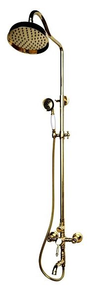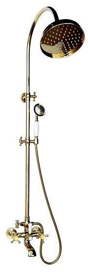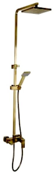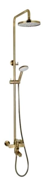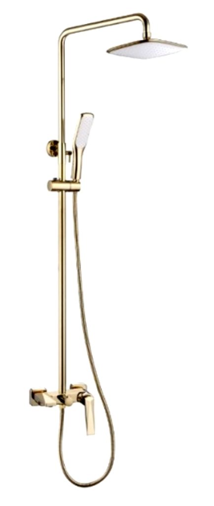 Modernes Einhebelgerät kann jedes Badezimmer schmücken. Der Hersteller hat sein Bestes gegeben und stilvolle, hochwertige Produkte mit langer Lebensdauer, absolut sicher, bequem und zuverlässig hergestellt. Der Durchmesser der Kopfbrause beträgt 200 x 200 mm. Die goldene Farbe lässt die Theke mit dem Rest des Badezimmers verschmelzen. Abmessungen - 38,5 x 122,3 cm, Herstellungsmaterial - Messing.