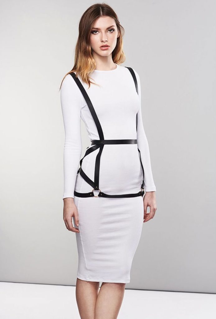 Äußerlich sieht das Geschirr aus wie miteinander verbundene Lederriemen. Jeder Riemen wird mit einem separaten Verschluss befestigt. Ursprünglich wurde diese Art von Garderobe von Männern während der Schlacht verwendet. An dieser Art von Gürtel wurden verschiedene Arten von Waffen befestigt. Den Designern gelang es jedoch, den Ledergürtel zu verwandeln und ihn zu einem Teil der Garderobe zu machen, der nicht nur die Figur betont, sondern die Frau auch von den anderen unterscheidet.