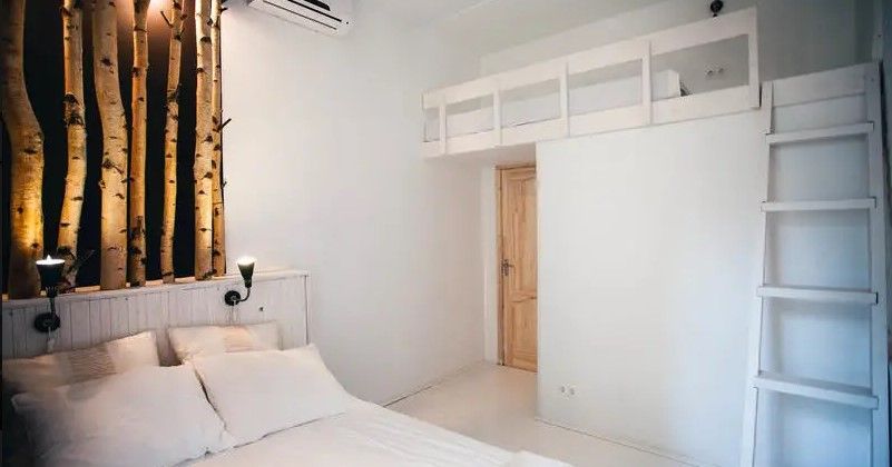 Helle farbenfrohe Dekoration und ungewöhnliches Design der Zimmer auf zwei Ebenen, Minimalismus und Funktionalität der Einrichtung machen das Hotel bei Touristen und Familien beliebt. Ein anderes Thema macht jedes der 14 Zimmer einzigartig (Dächer von St. Petersburg, Scharlachrote Segel, Puschkin, Sommergarten, Meeresruhm usw.)