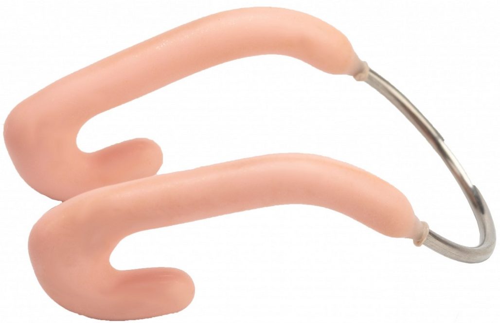 Das Funktionsprinzip des Nasenstöpsels ist einfach: Die Gabeln werden an der Außenseite jedes Nasenlochs platziert und komprimieren sie, bis die Wasser- und Luftwege vollständig blockiert sind.