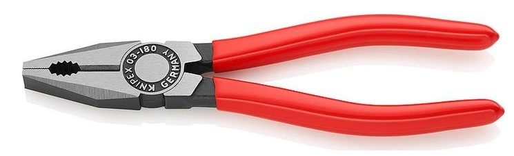 Kombizangen des deutschen Herstellers Knipex sind zum Erfassen und Halten von großen und mitteldicken Drähten, flachen und runden Metallgegenständen konzipiert. Das Arbeitsteil besteht aus hochfestem gehärtetem Stahl mit einer Härte von etwa 60 HRC, was eine feste Klemmung und eine lange Lebensdauer gewährleistet. Der Hauptzweck sind Installationsarbeiten. Relativ geringes Gewicht: 120 g bei einer Produktlänge von 18,5 cm Die Griffe sind aus Kunststoff, schlicht rot. Kosten: ab 1599 Rubel.