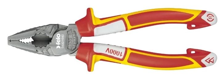 Die Dielektrikum-Zange des deutschen Herstellers Felo hat verchromte Griffe, die 16 cm lang mit Schwämmen sind, die Griffe sind mehrkomponentig ummantelt. Die verstärkte Schneide ermöglicht das Arbeiten mit runden Gegenständen und Kabeln. Hervorragende Verarbeitung, dicker Stahl, Metall hat keine Angst vor Wasser. Nicht zum Klemmen von dünnen Drähten geeignet, da zwischen den Backen ein Abstand von 1 mm vorhanden ist. Einschränkung - 1000 V. Farbe ist hell - rot. Preis: ab 2170 Rubel. Online bestellbar.