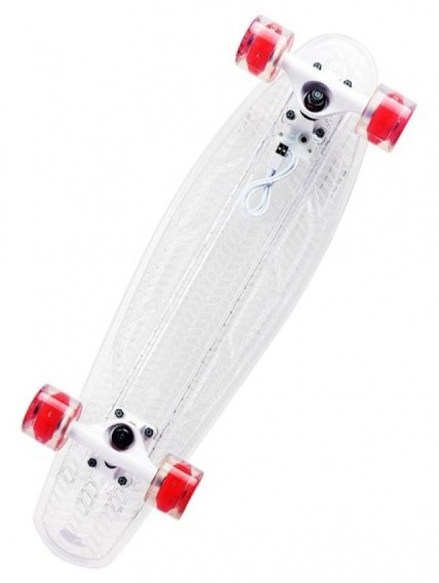 Dieses Board wird aufgrund der Länge des Decks (27 Zoll) als Longboard kategorisiert. Es ist perfekt für Skater-Anfänger, da es aufgrund seiner Länge eine große Stabilität hat und es Ihnen nicht erlaubt, versehentlich scharfe Manöver zu machen. Lager der neunten Klasse ermöglichen Ihnen ein langes und weiches Abrollen auch auf unebenen Oberflächen. Wie beim Vorgängermodell glühen hier Räder und Deck. Das Produkt wird in verschiedenen Farben angeboten - weiß, grün, blau.