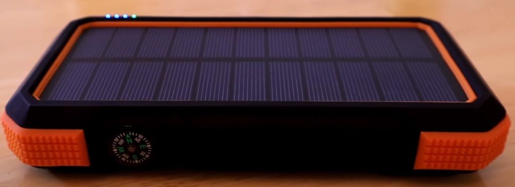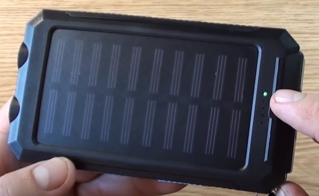 Hier sind ein monokristallines Solarpanel mit einer Leistung von 1,5 W und ein Lithium-Polymer-Akku mit einer Kapazität von 8000 mAh verbaut. Um zwei Geräte gleichzeitig aufzuladen, verfügt das Gehäuse über zwei Micro-USB-Anschlüsse mit einem maximalen Strom von 1 A und 2,1 A. Die Spannung des Micro-USB-Eingangsanschlusses beträgt 5 V, der Strom beträgt 1,5 A. Die verbleibende Ladung wird angezeigt durch 4 LED-Anzeigen. Im Durchschnitt kostet dieses Modell 3616 Rubel.