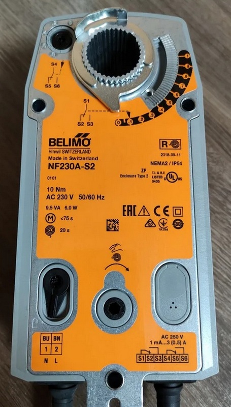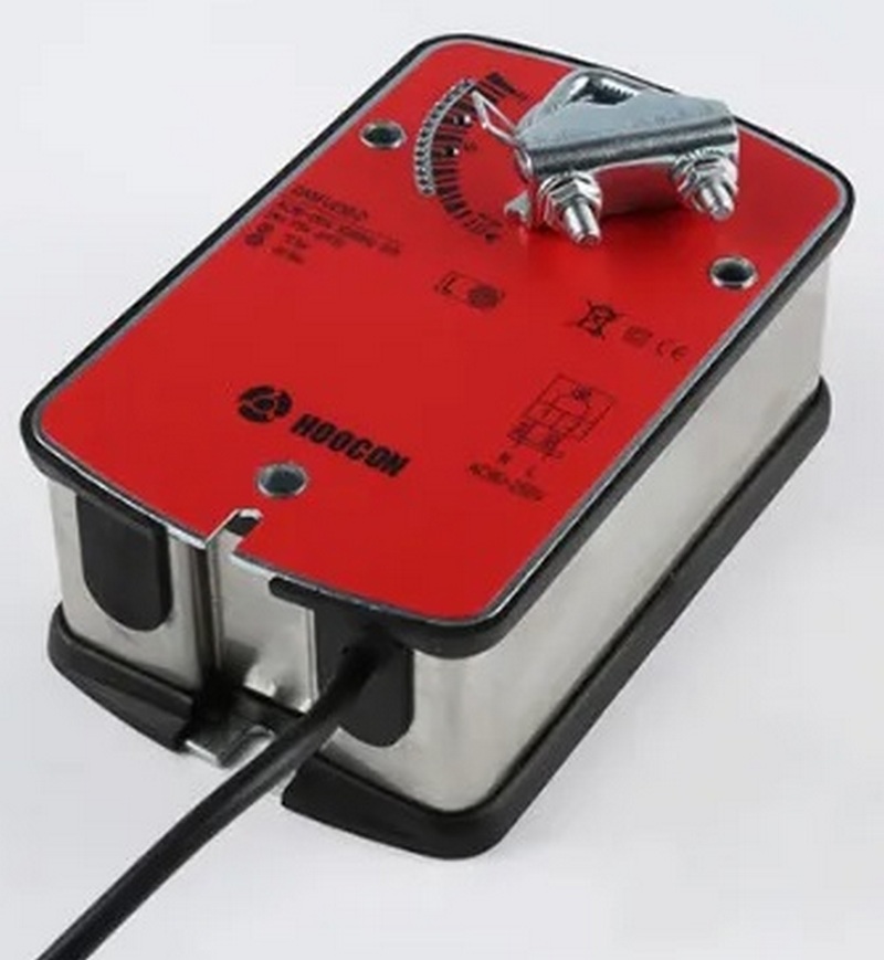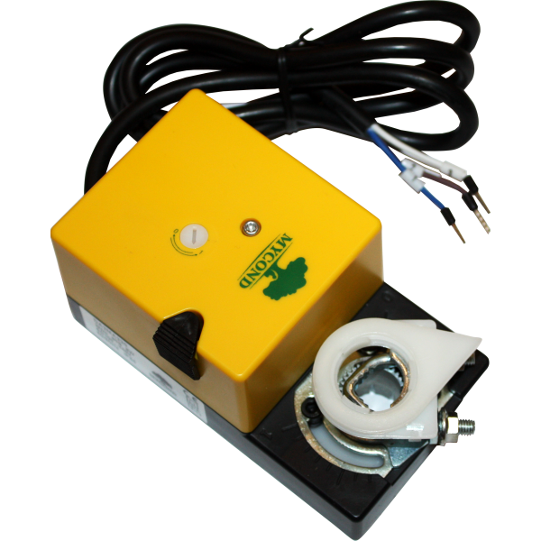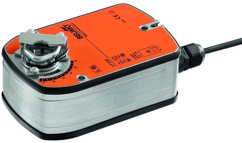Dieses Produkt kann den Luftstrom nicht stufenlos regulieren, daher wird es eher zur Steuerung von Klappen in einfachen Klimaanlagen verwendet. Für ihn ist es zwingend erforderlich, dass einige Punkte des Luftstroms durch mechanische Ventile reguliert werden. Mit speziellen Adaptern kann dieser Antrieb mit Wasserventilen verwendet werden. Das Nenndrehmoment beträgt 2,0 Nm, die verwendete Spannung ist AC 24 V, die maximale Flügelfläche beträgt bis zu 0,4 Quadratmeter, die Zeit zum Drehen des Stellantriebs beträgt 30 s. Management - 2/3-Position. Die empfohlenen Kosten für Einzelhandelsketten betragen 3400 Rubel.