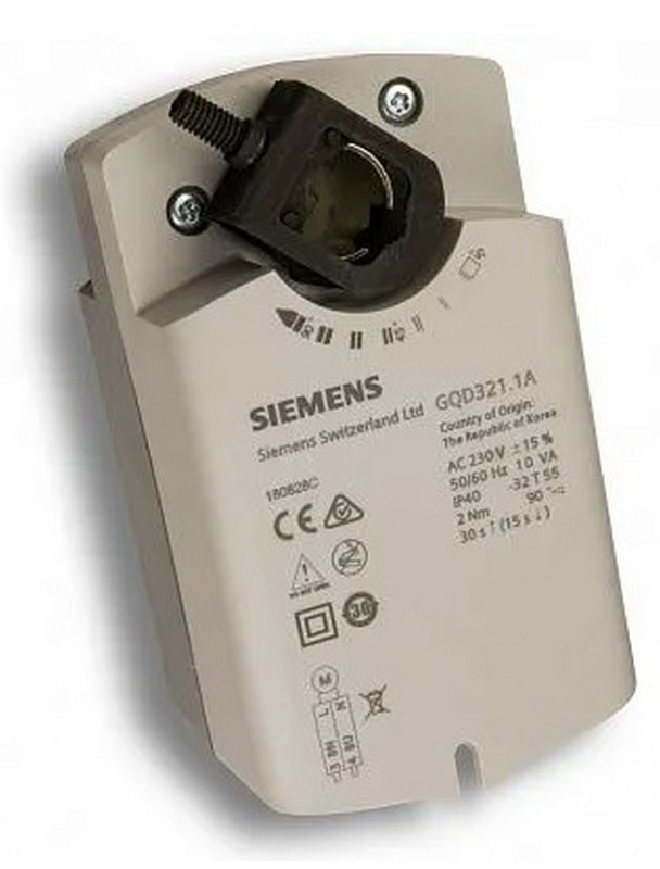 Die Probe wird in Belüftungssystemen als Teil von Einlass- oder Auslassventilen verwendet. Der Antrieb wird von SIEMENS hergestellt und entspricht vollständig den europäischen Normen für HLK-Systeme. Er gehört zur Gruppe der Stellantriebe mit Federrückstellung (Schutzfunktion), was den Einsatz in Anlagen ermöglicht, bei denen die Klappe bei stromlosem Abschalten in ihre ursprüngliche Position zurückgeführt werden muss. Die Kraft beträgt 18 N * m, was ausreicht, um mit Luftklappen mit einer Fläche von bis zu 3 m² zu arbeiten. Die empfohlenen Kosten für Einzelhandelsketten betragen 24.300 Rubel.