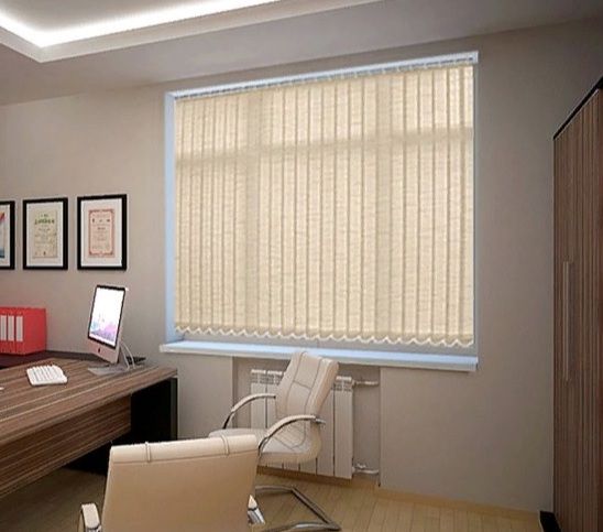 Das System ist ein Gesims mit einem beweglichen System, an dem vertikale Lamellen mit einem Gewicht befestigt sind. Es ist in Räumen mit niedrigen Decken angebracht, da es die Höhe optisch erhöht. Die Farben können einfarbig, gemustert oder mit Mustern sein. Solche Jalousien werden in einer Wohnung installiert, meistens in Wohnzimmern (Kinderzimmer, Schlafzimmer).Vertikaljalousien bestehen meistens aus Stoff, der mit einer speziellen Substanz imprägniert ist, die die Ansammlung von Staub und Verblassen verhindert.