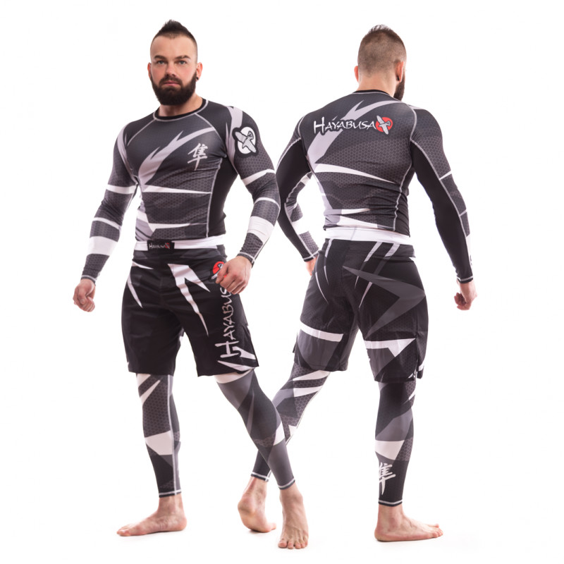Rashguard HAYABUSA ist sehr stark, verblasst nicht im Betrieb, super Design, sehr starke Nähte. Der einzige Nachteil ist der Preis, aber Sie können für hervorragende Qualität bezahlen. Das Kompressions-T-Shirt einer bekannten japanischen Marke ist ausschließlich für männliche Athleten konzipiert, deren Trainingsbereich MMA, Wrestling, Surfen, Radfahren und mehr ist. Einzigartige Schneidetechnologie und eines der besten thermoregulierenden Stoffe geben dem Kämpfer Vertrauen, sowohl im Training als auch direkt im Achteck. Das HAYABUSA-Sortiment umfasst Ausstattungen in verschiedenen Farben, mit langen und kurzen Ärmeln und einer Vielzahl von Drucken, letztere werden mit einer speziellen Technologie aufgebracht und haben eine hohe Verschleißfestigkeit. Jedes Rashguard-Modell hat eine große Auswahl an Größen, vom kleinsten S bis zum riesigen 7XL.