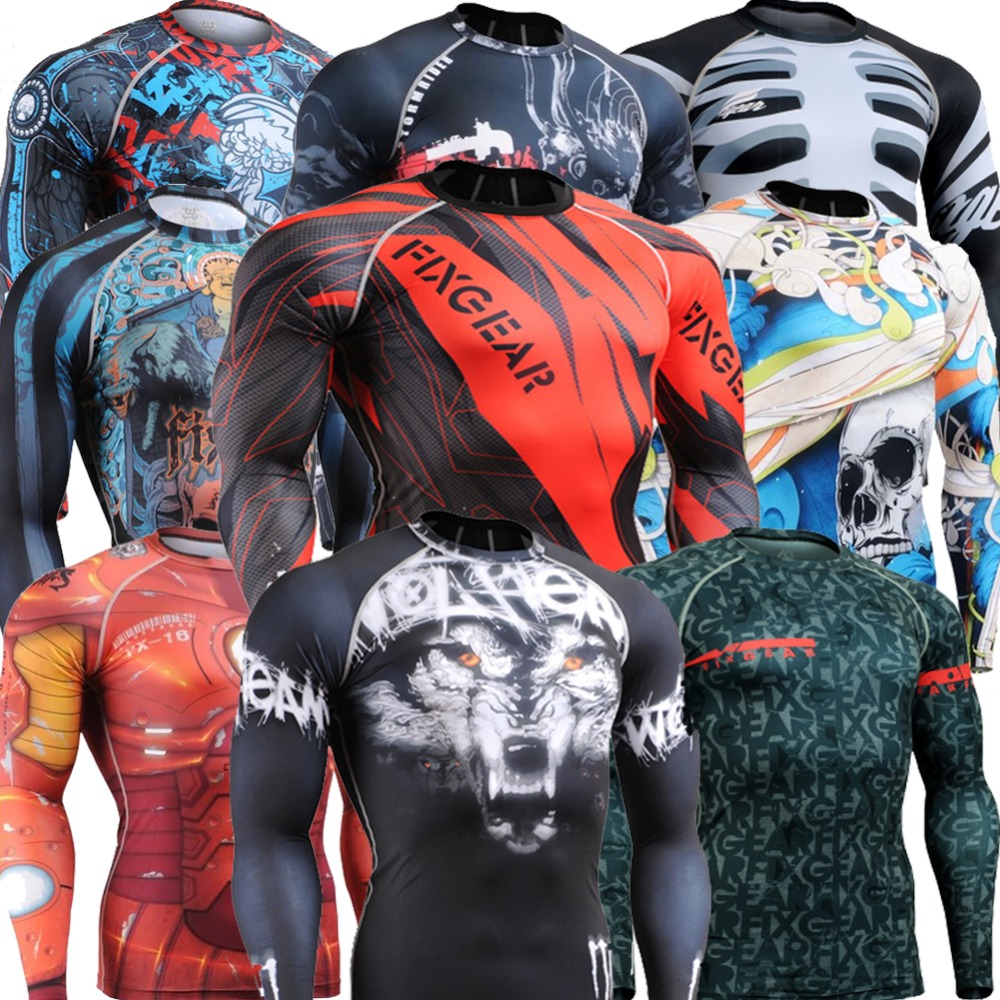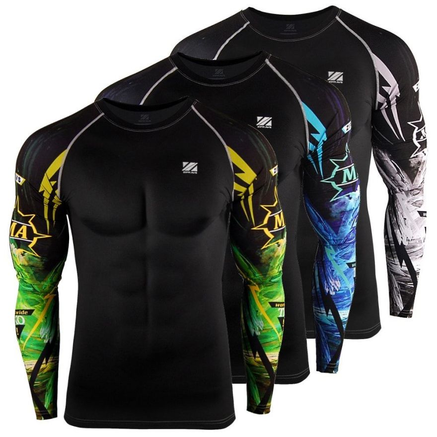 Erstaunlich ist auch, was moderne Rashguards sind: Ihr Sortiment wird durch eine Vielzahl von Größen und Drucken, Ärmellängen sowie männlichen und weiblichen Modellen repräsentiert. Sie sollten wissen, dass beim Nähen von Sport-T-Shirts auch unterschiedliche Materialien (Polyester, Spandex, Nylon, Bambusfaser) verwendet werden, je nachdem unterscheiden sich auch die Eigenschaften des Produkts. Polyester hat eine hohe Dichte, Spandex hat die beste Dehnung und Bambusgewebe ist in vielerlei Hinsicht Baumwolle ähnlich (dehnt sich schlecht, ist aber hoch atmungsaktiv).
