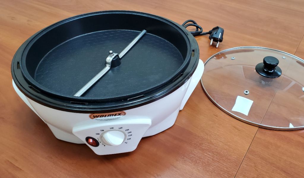 Dieses Modell gilt als eines der beliebtesten und einfachsten für den Heimgebrauch. Das Rösten erfolgt mit Heißluft. Grüne Körner werden in ein spezielles Fach gegeben, während des Röstvorgangs wird die Schale getrennt und sammelt sich im oberen Fach.