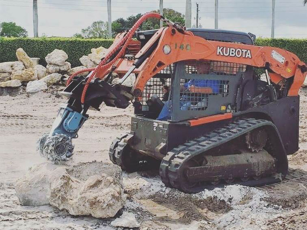 Patentierte Markengeräte für den Einsatz auf Kleinbaggern bis 12 Tonnen. Ausgestattet mit einem innovativen System ohne Lücken in der Mitte oder an den Seiten. Geeignet für Gräben und ebene Flächen. Sie werden zum Zerkleinern von Baumstämmen und Wurzeln, zum Fräsen von Asphalt- und Betondecken und zum Öffnen von Gipsvorkommen eingesetzt.
