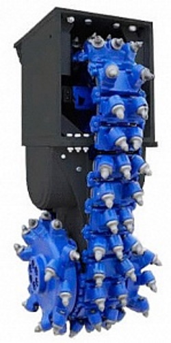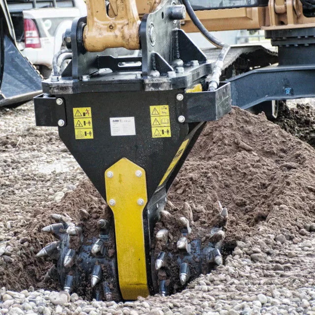 Die Geräte eignen sich gut zum Verlegen schmaler Gräben ab 480 mm Breite bei optimalem Wandprofil. Die durchgehende Kette, die von Trommeln mit Messern angetrieben wird, entfernt automatisch das zerkleinerte Material aus dem Zwischenraum. Das Ausheben eines Grabens mit minimaler Breite spart unnötige Transportkosten für den Abtransport von Brechgut und reduziert die Schüttgutkosten.