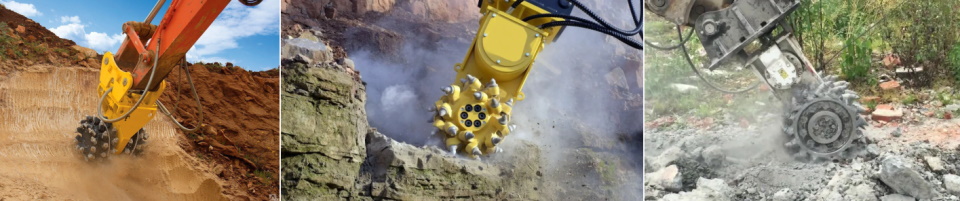 Universelle Modelle zum Ausheben und Ausbaggern, Tunneln oder Grabenziehen, Profilieren von Beton- und Steinmauern, Abbruch verschiedener Strukturen. Sie zeigen gute Ergebnisse dort, wo herkömmliche Methoden nicht effektiv genug sind und der Einsatz von Schock- oder Sprengmitteln unpraktisch ist. Der niedrige Geräuschpegel ermöglicht den Einsatz in unmittelbarer Nähe von Wohngebieten, Krankenhäusern, Schulen, Brücken und anderen sensiblen Infrastrukturen. Die hochbelastbare Übertragungswelle wird nicht durch Zylinder belastet, die in verschleißfesten Lagern gelagert sind.
