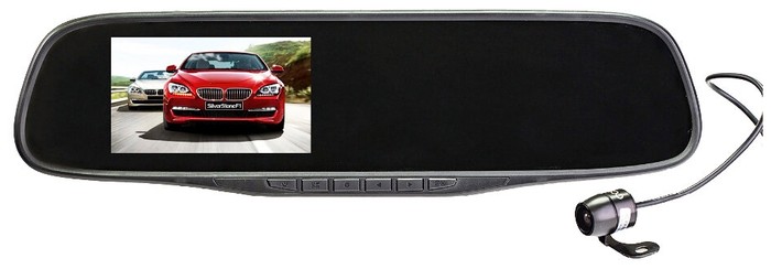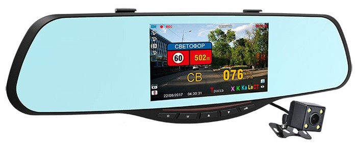 Die Beschreibung von Spiegeln mit eingebautem Videorecorder reduziert sich auf eine Liste der Eigenschaften des letzteren. Der Spiegel dient als eine Art Sockel, auf dem alles befestigt und das Bild angezeigt wird. Modelle sind sehr komfortabel für den Fahrer, machen das Parken sicher.