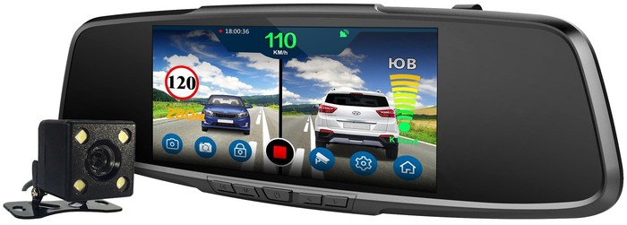 Der DVR ist mit einem direkt in das Spiegelgehäuse eingebauten Radardetektor und zwei ferngesteuerten Kameras mit Weitwinkelobjektiv ausgestattet. Zusätzlich sind ein GPS-Navigator, ein Stoßsensor und ein Bewegungsmelder im Spiegel montiert, mit einem Bild im Rahmen.